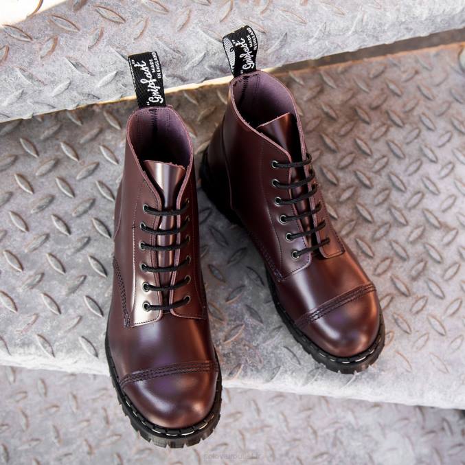 Femme 420d296solovair Bottine Derby à Embout D’acier à 6 œillets Haute Brillance Oxblood