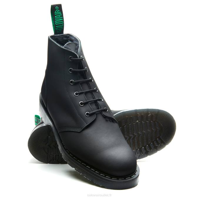 Femmes 420d243solovair Botte D’astronaute Noire à 6 œillets Doublée De Peau De Mouton Grasse